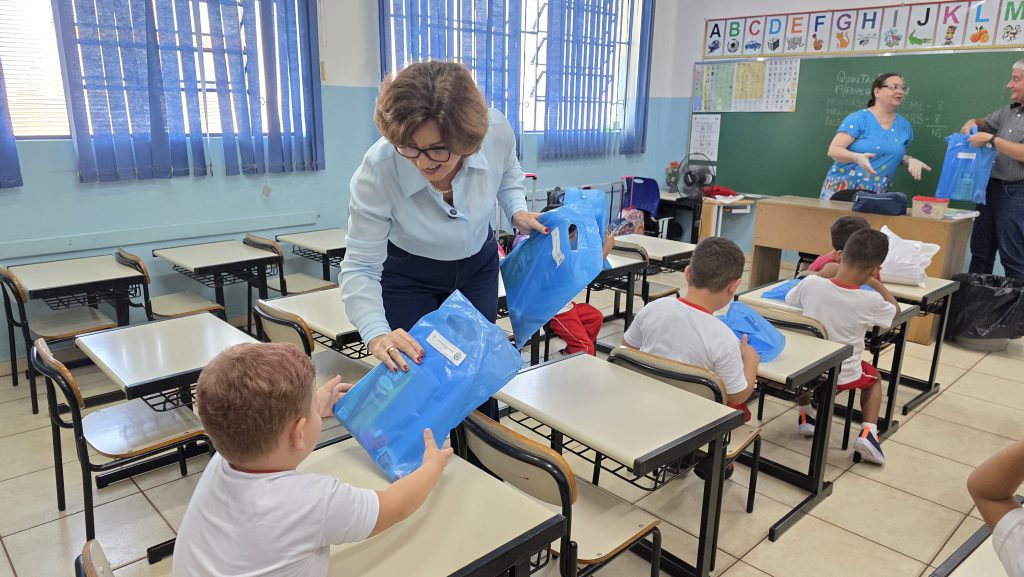 Os 3.558 alunos da rede municipal de ensino, infantil e fundamental, retornaram às aulas nesta quinta-feira (19). A prefeita Cristina Saad e a secretária de Educação, Regiani Dias, acompanharam o início das aulas na Emef Maria Nazareth Stocco Lordello e no CEI Martha Salibe Abrahão. Elas entregaram os novos uniformes e materiais escolares às crianças.