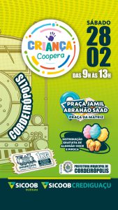 Evento com distribuição gratuita de algodão doce e pipopa; passeio de trem e brinquedos infláveis